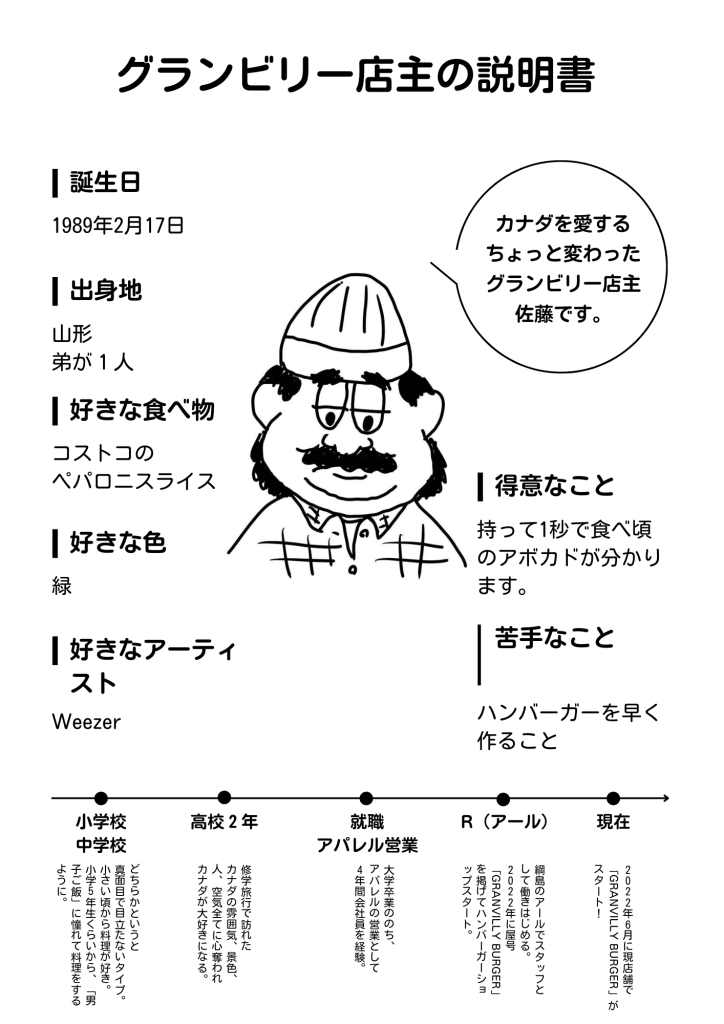 ─── そもそも「カナダでお店を持つ」ことが夢だったんですね!移住の断念は無念だったと思いますが、佐藤さんのカナダへの想いを、今ここで形にしているのがGRANVILLY BURGERなんですね。