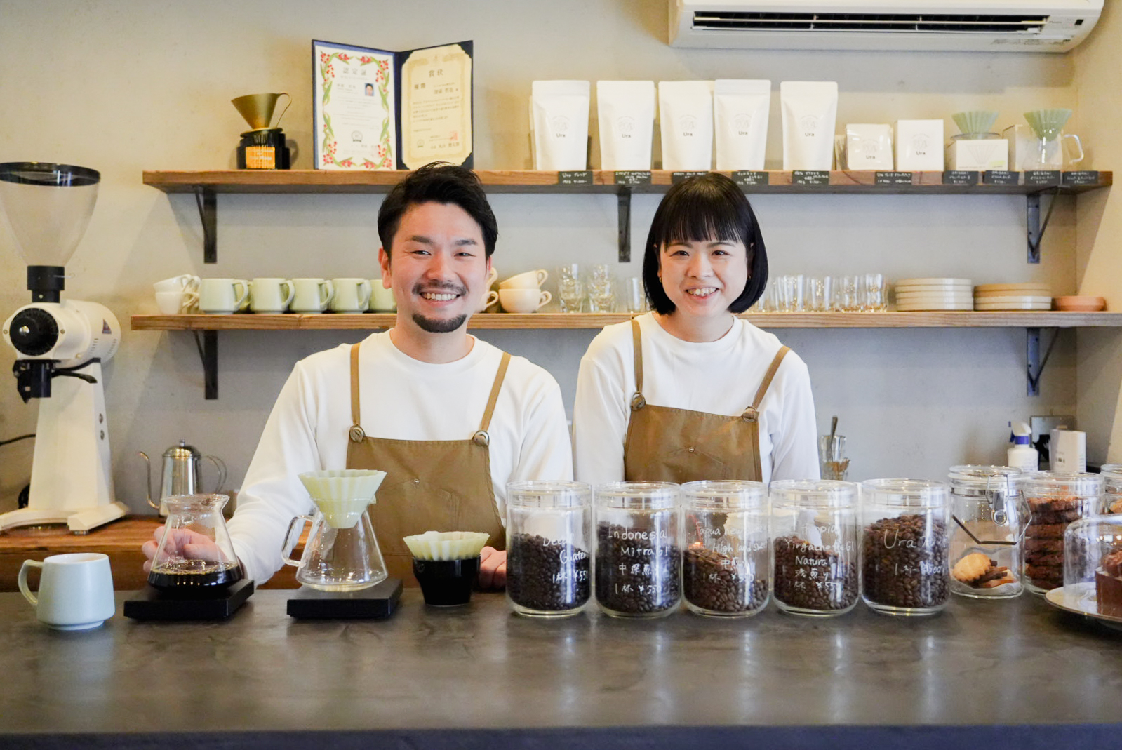 カナダの生活の中でよく見る風景の中に当たり前にコーヒーがあり、コーヒースタンドでのコミュニケーションが嬉しく、人と人との触れ合う優しい場が自分にとって心地いい環境であることに気づく。日本に帰国後、鎌倉の飲食店で哲也さんと出逢い結婚。現在一児の母として育児に奮闘しながら、カフェでの経験を活かしUraでは焼菓子も担当。
