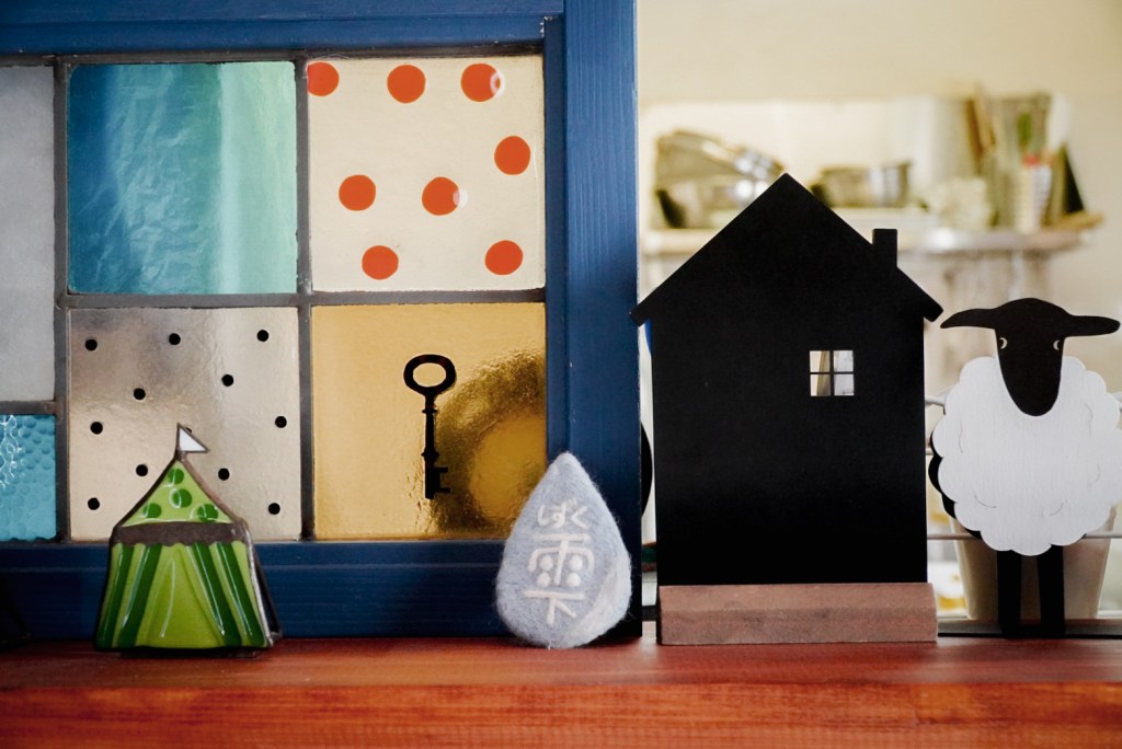 鮮やかな青い壁が印象的な店内には、温かみのある木のカウンターと カラフルで可愛らしいステンドグラスたち。そんなほっとする空間で、カウンター越しに笑顔で迎えてくれる方が オーナーの阿部直美さんです。