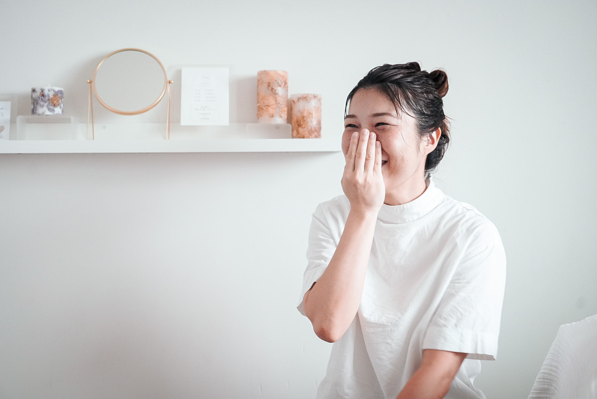 私が癒しを求めていた時、Instagramで目にとまったのが「ほんじつの癒し」でした。白を基調とした落ち着いた内装と、もともと好きだったアロマの世界観に惹かれ、自然と定期的に足を運ぶようになっています。